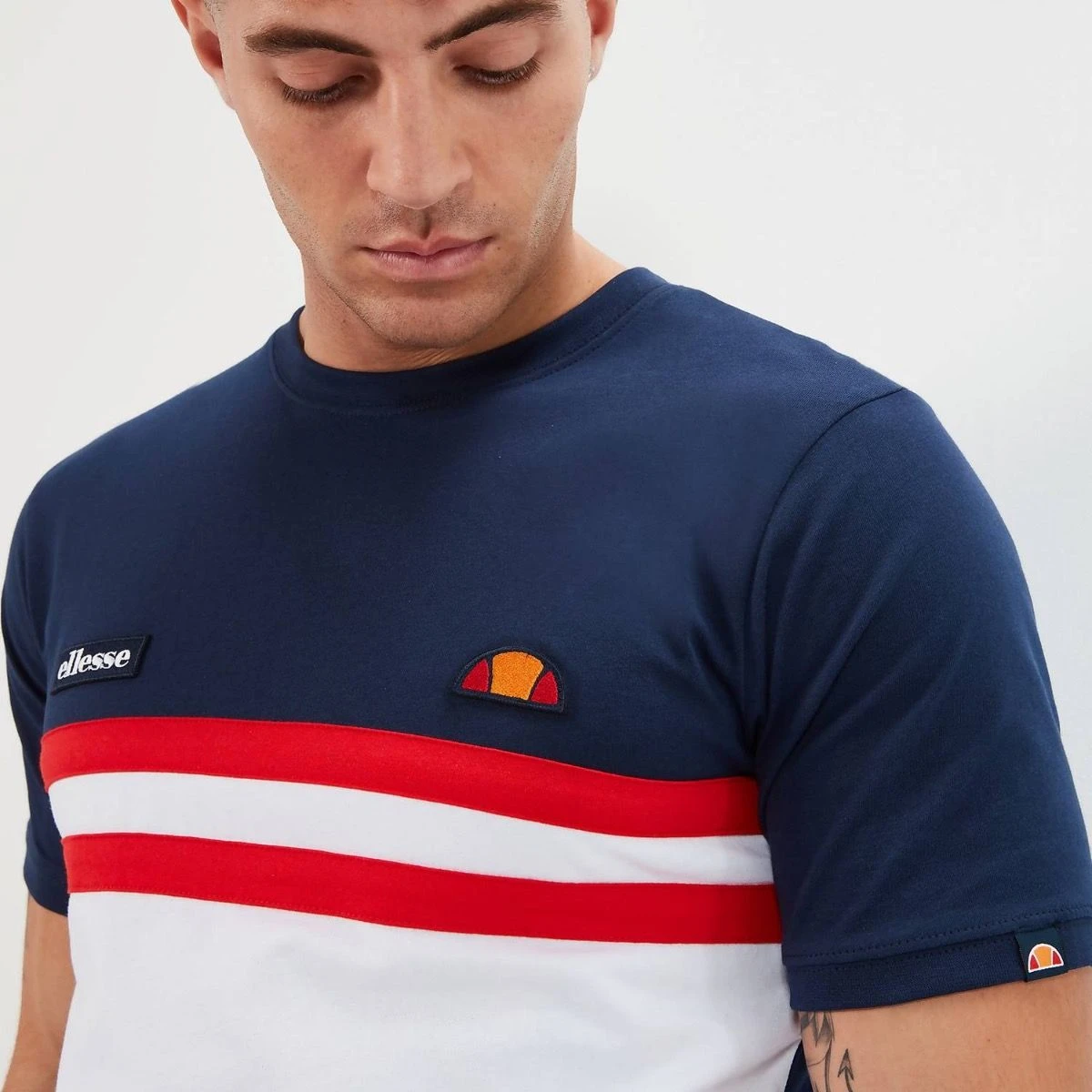 The Venire Tee. Add to your collection with this contrast tee. Crafted from 100% cotton, it comes in a standard fit, features stripe detailing to the chest and our embroidered logo and signature branded tab to the sleeve. Putting together a casual fit has never been easier. Additional features include;