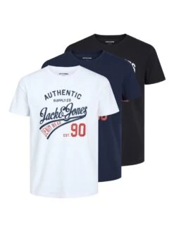 Jack & Jones Logo t-shirt made of cotton material comes in a 3 Pack. Additional Features include;