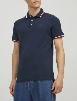 The Jack & Jones Paulos is a a wardrobe staple, the classic short sleeved polo in Navy Blazer with tipped collar will make you stand out. Combed jersey is stretchy and has a soft feel, perfect for everyday wear.