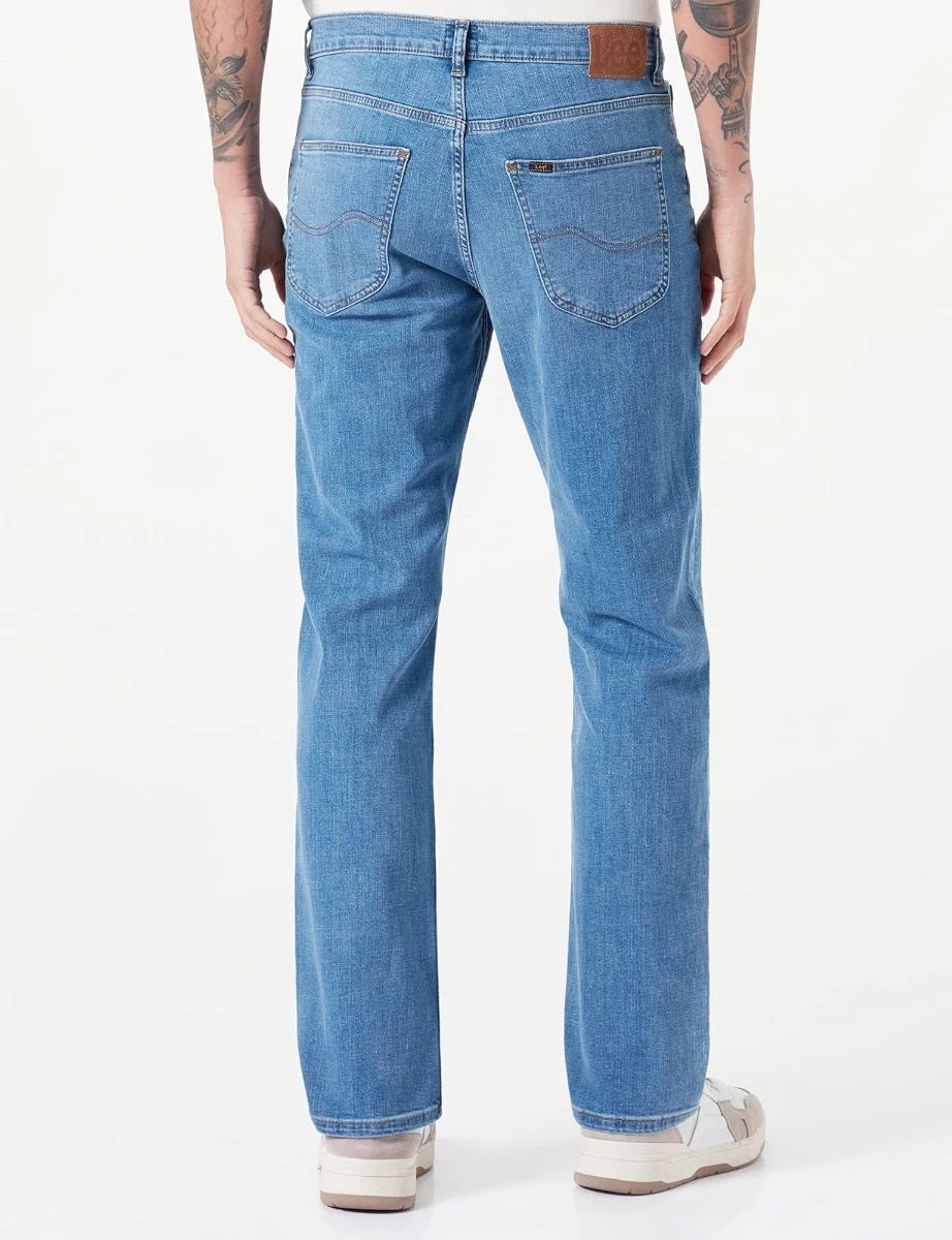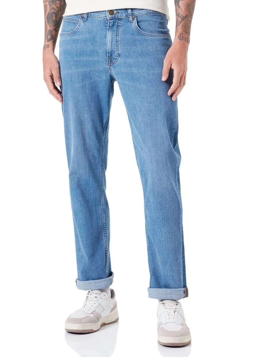 Lee Brooklyn Straight mens stretch denim jeans in Manhattan Mid. Great comfortable wearing jeans for everyday use. Additional features include;