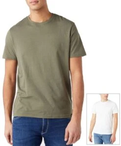 There’s always a place in your wardrobe for these basic essential tees. This two-pack includes two regular t-shirts in dusty olive and white, both crafted from soft, breathable cotton for superior comfort.