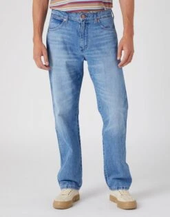 The Wrangler authentic Frontier jeans in colour Blue Bill feature a comfortable mid-rise waist, relaxed thigh and a straight leg.