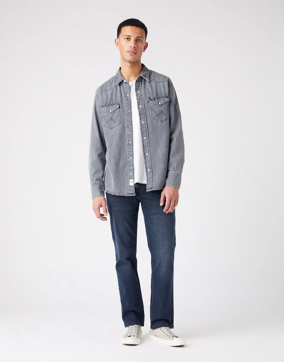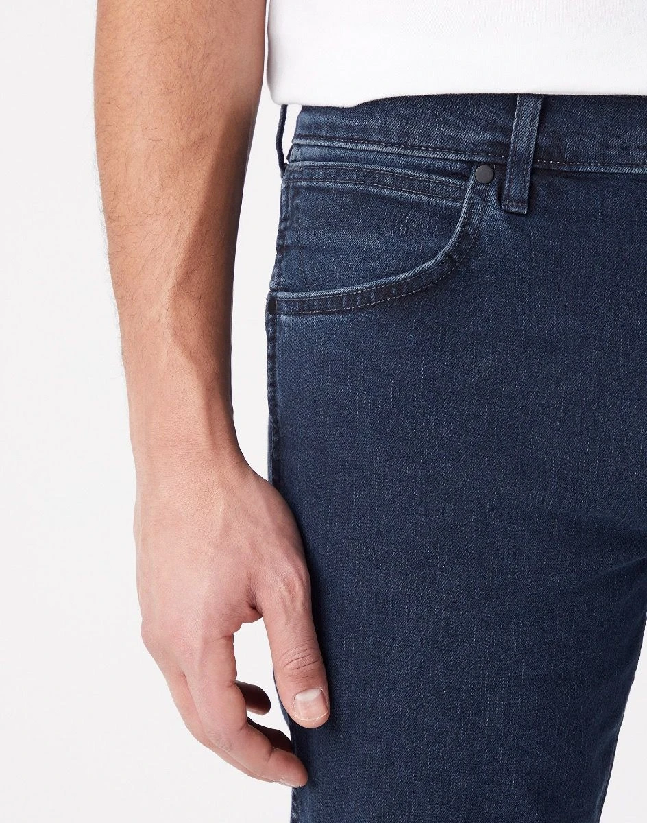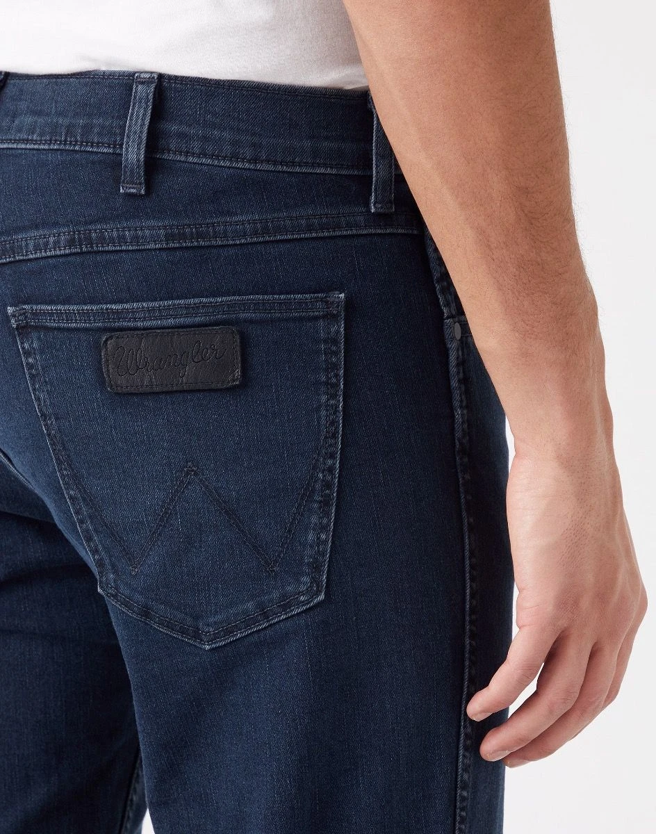 Wrangler Greensboro jeans feature a low rise waist, zip fly, regular fit through the thigh and a straight leg.A well-loved classic for a reason. Our Greensboro jeans are refreshed for the season in medium stretch, dark blue denim. Made with recycled cotton and cotton endorsed by the Better Cotton Initiative (BCI), the world’s largest cotton sustainability program. Authentic Wrangler stitching and logo patch. Additional